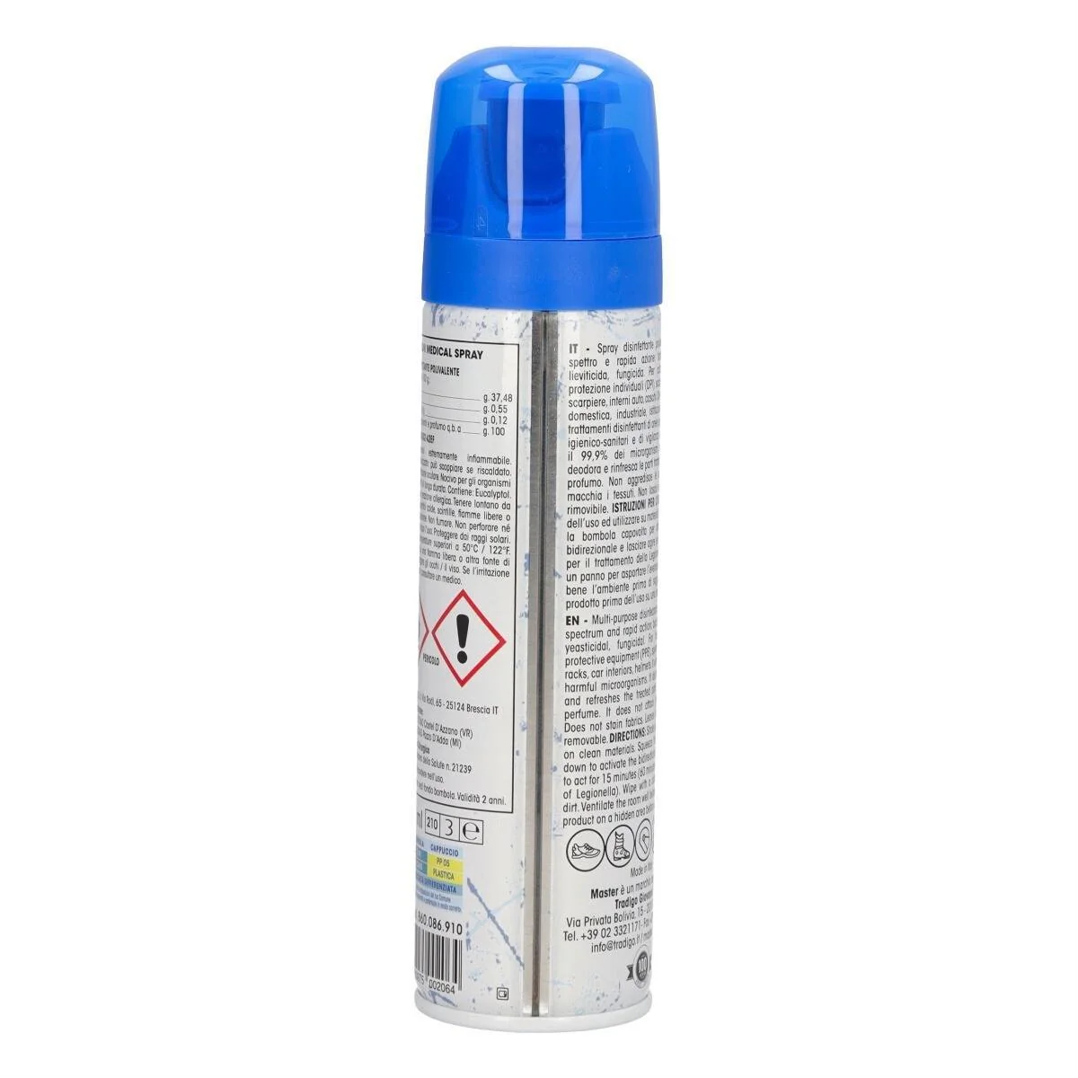Spray disinfettante con beccuccio a doppio getto anteriore e posteriore. Efficace grazie all’alta concentrazione di principio attivo.