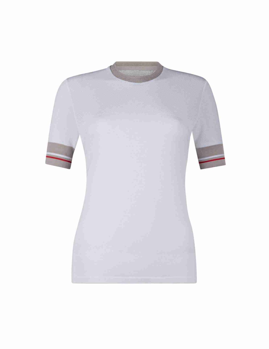 T-shirt tecnica realizzata in 100% viscosa con dettagli di rete sul dรฉcolletรฉ e sulle maniche. Leggera, fresca e traspirante, รจ perfetta per lo sport e per il tempo libero. Impreziosita da raffinati dettagli in contrasto su collo e maniche. Confortevole, easy care.