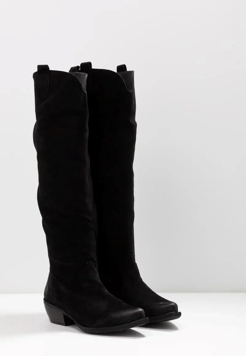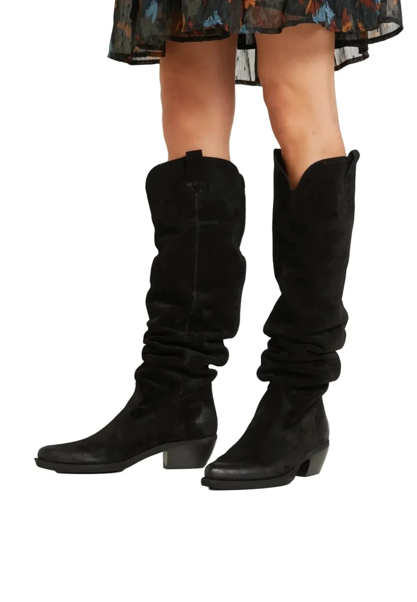 Cowboy Boots gamba alta in pelle scamosciata e fresata con fondo gomma flessibile e antiscivolo.