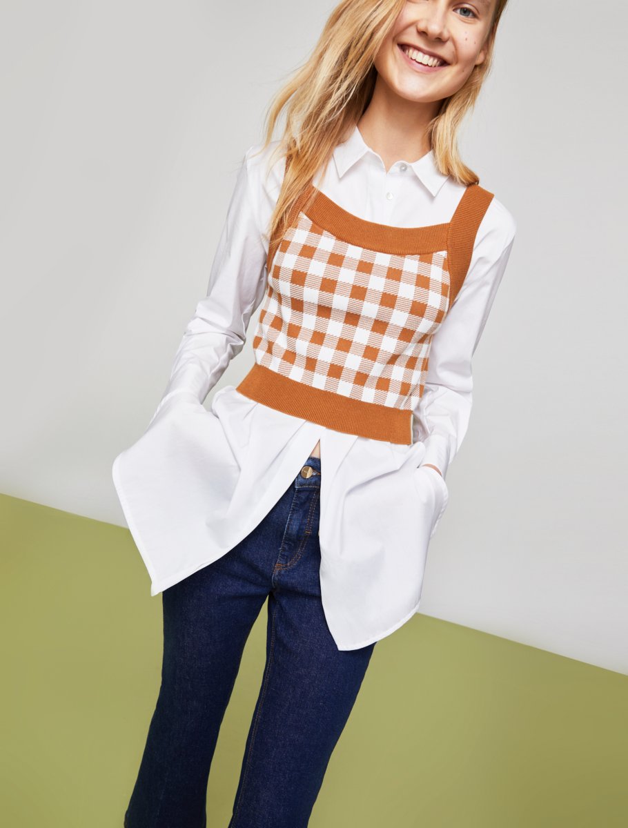Top Iblues in maglia stretch jacquard dalla linea aderente. Taglio a canottiera, con scollo tondo e spalline. Tessuto contenente materie prime derivanti dalla cellulosa del legno, fibra ricavata nel rispetto del patrimonio forestale. Tonalitร disponibile: Rame