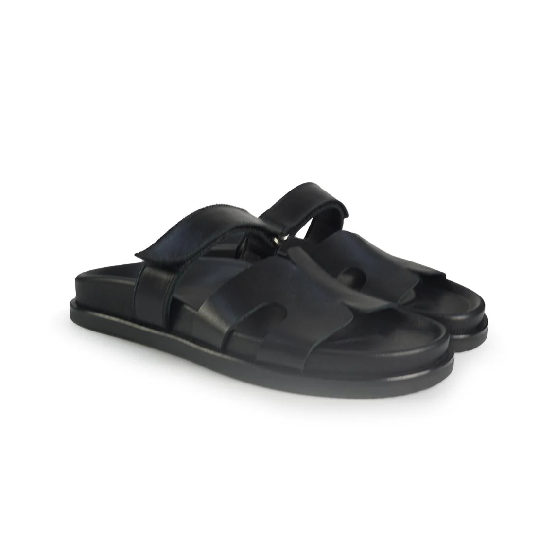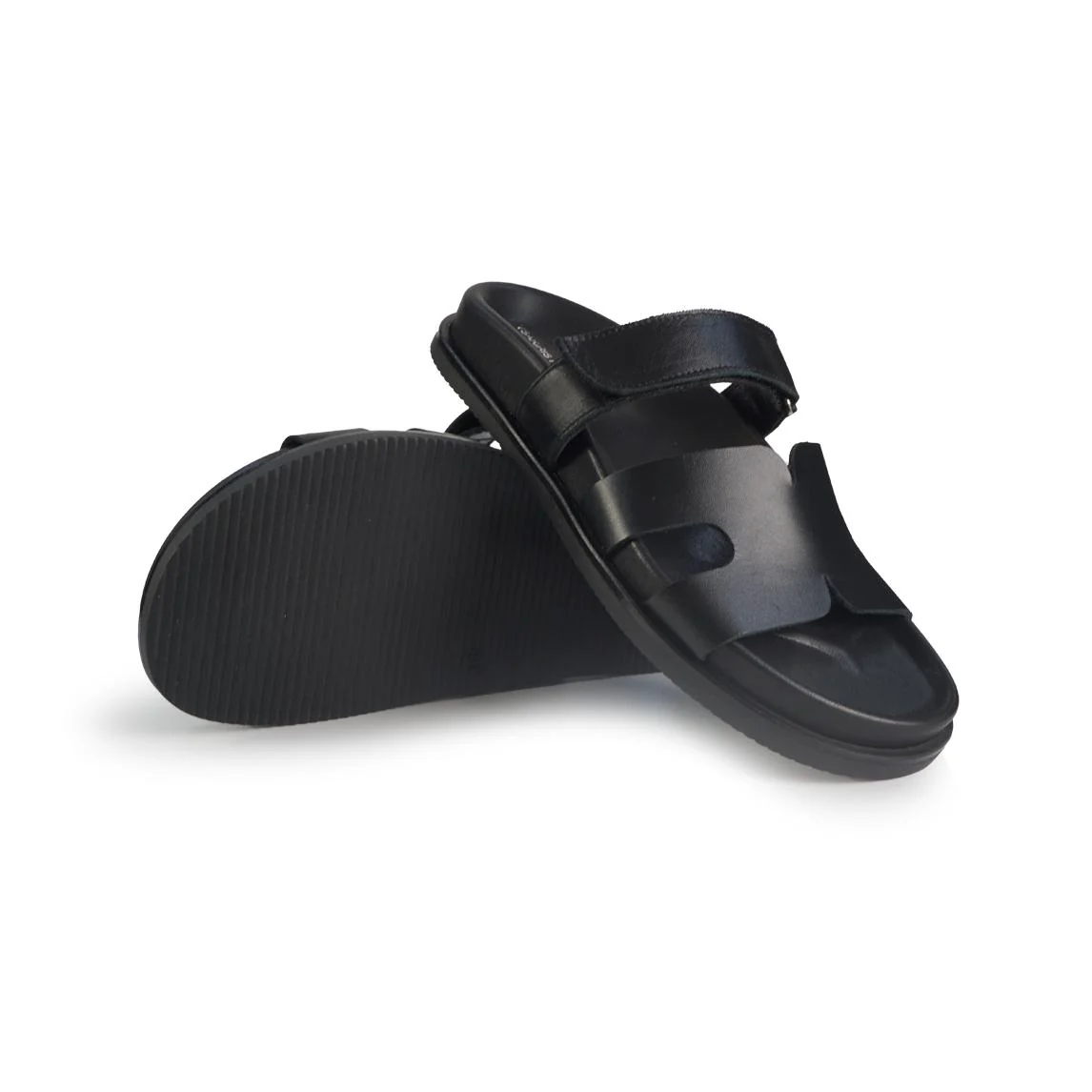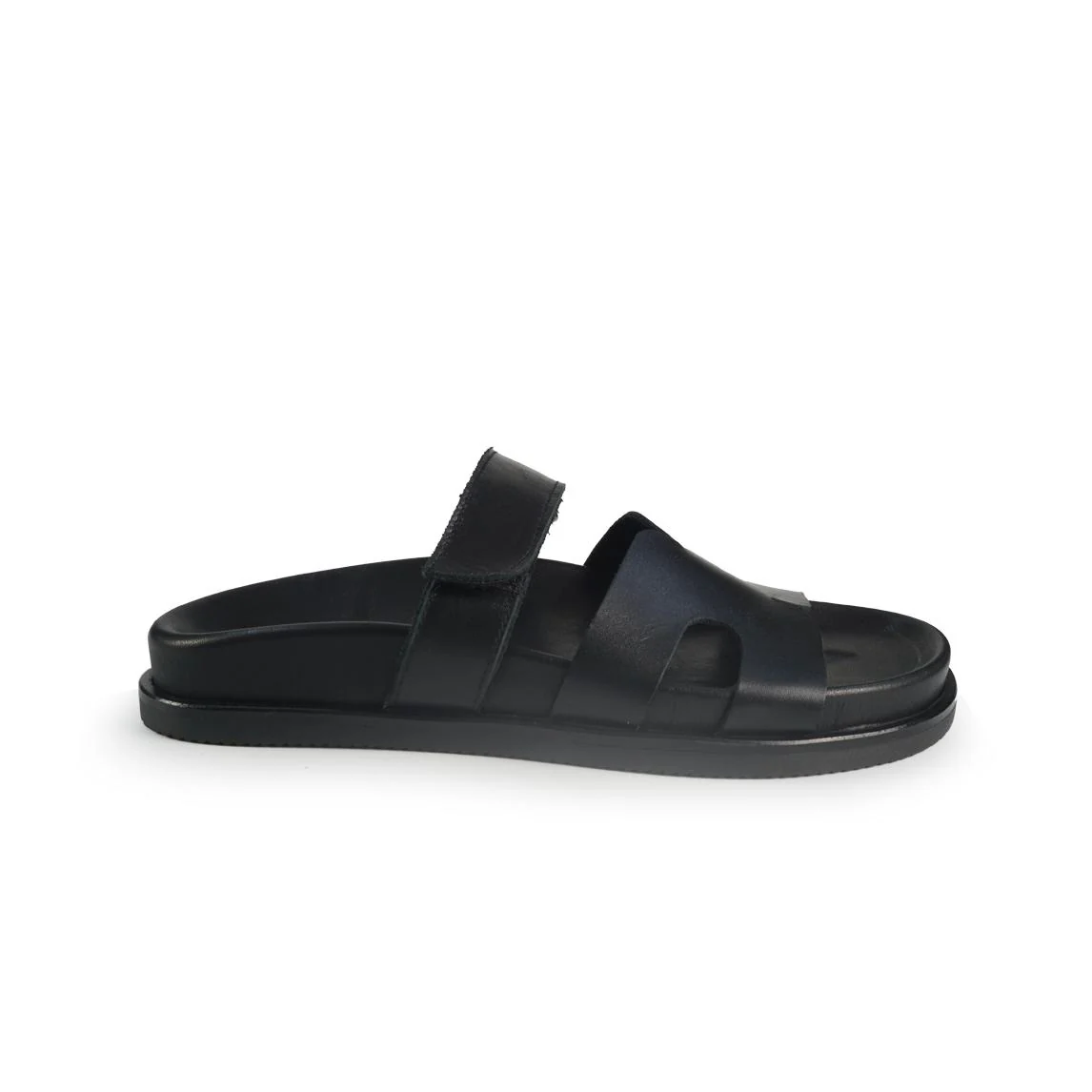Sandalo scalzato con plantare in pelle e tomaia sul collo piede con regolazione velcro. Fondo flessibile e antiscivolo.