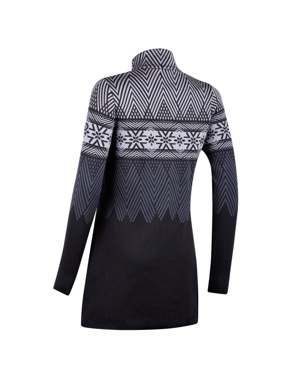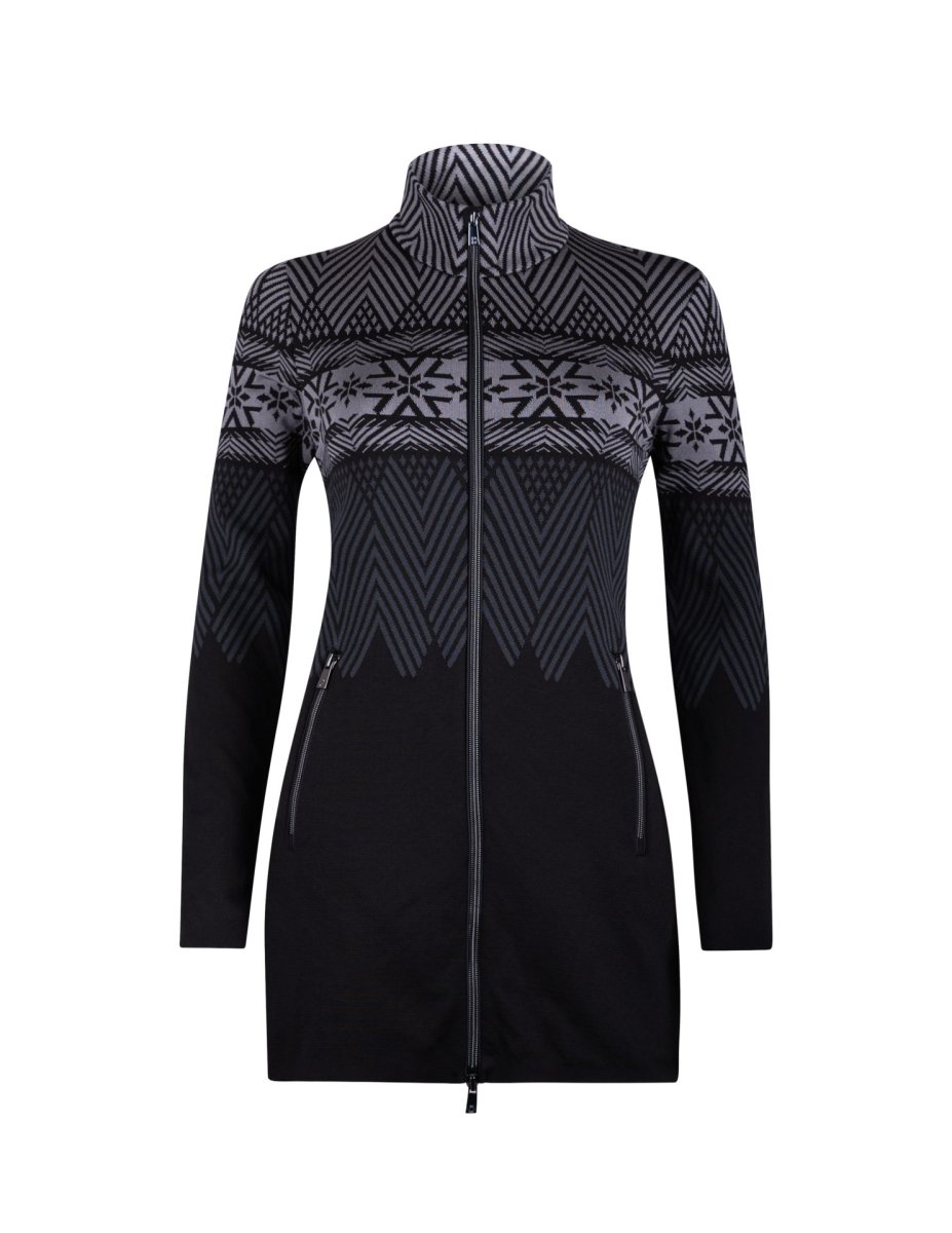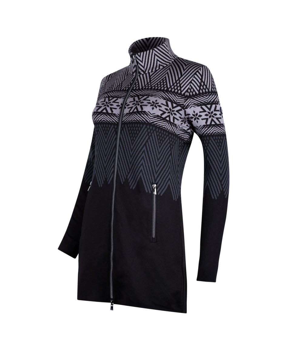 Tunica funzionale e easy care in DHtech 400, arricchita da sofisticato jacquard norvegese, con lunga zip frontale e tasche. Puรฒ essere abbinata a leggings, pantaloni o jeans stretch per un look raffinato e originale.