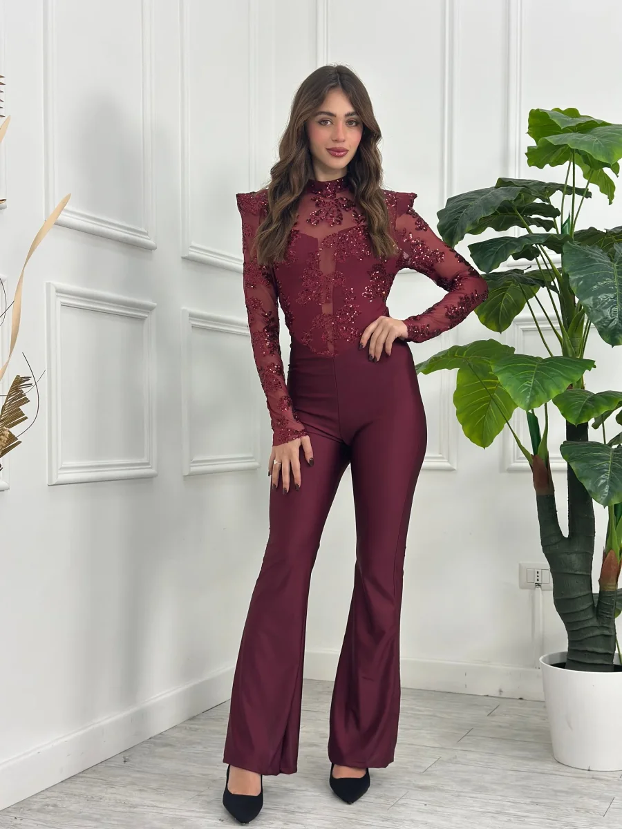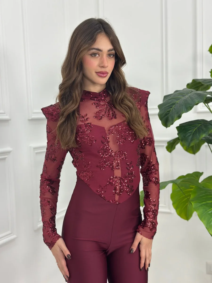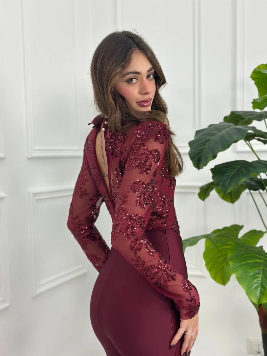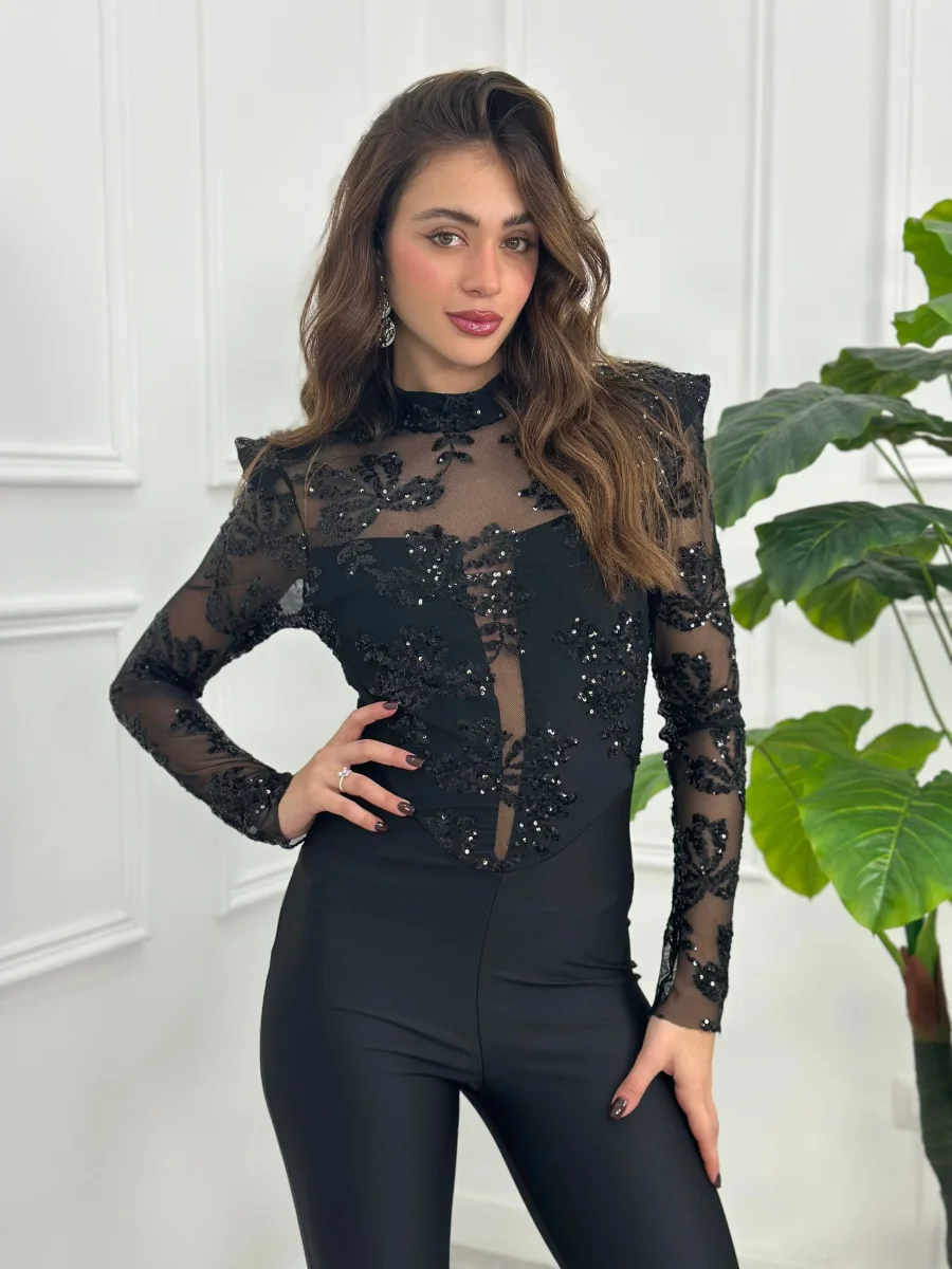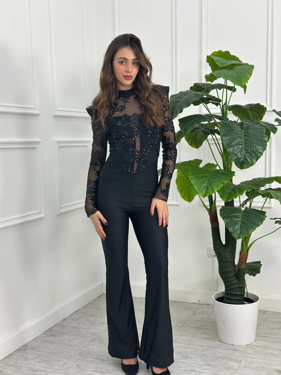 Tuta con bustier in tulle e paillettes