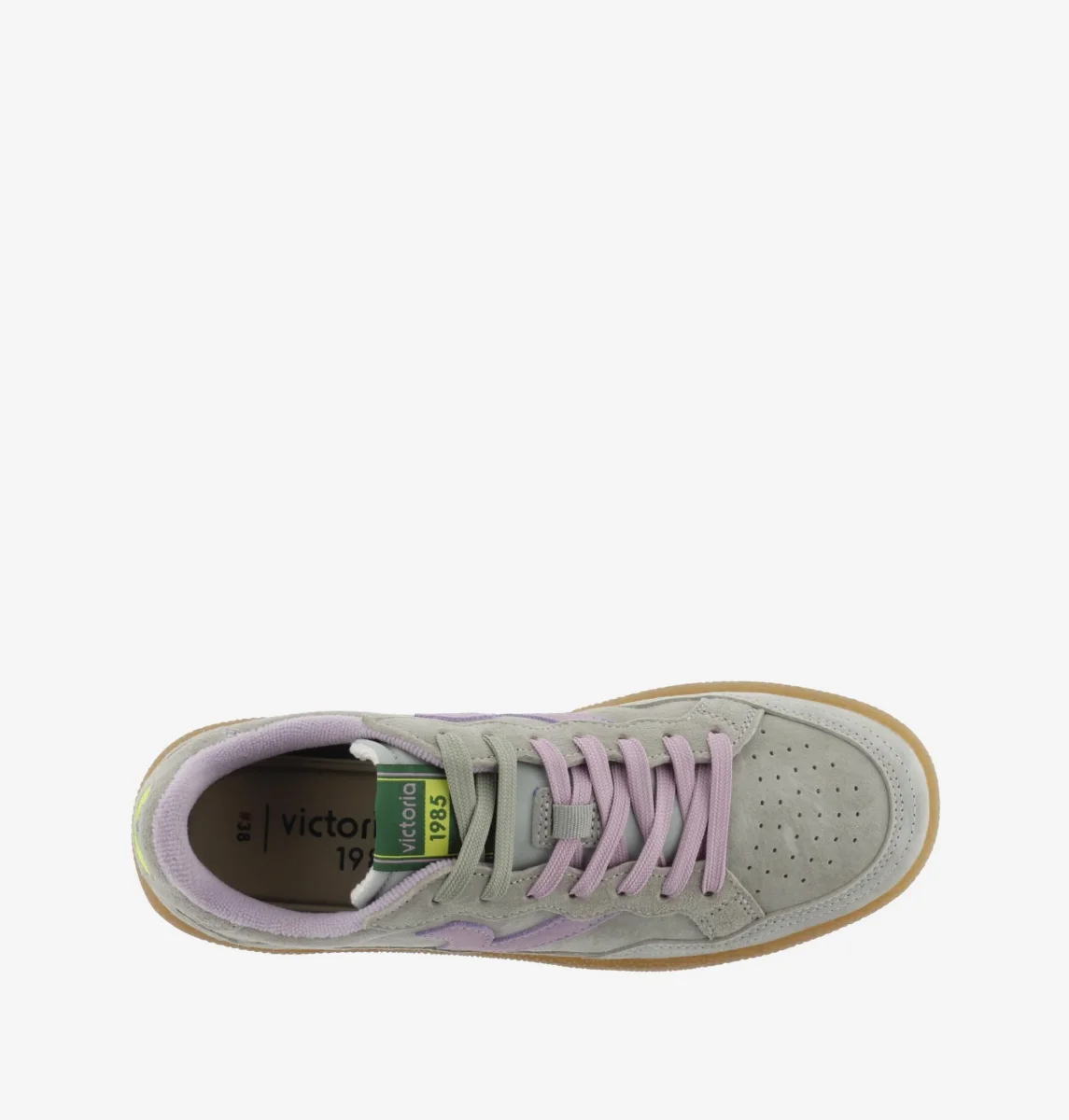 Sneakers Victoria Smash ispirata al mondo del tennis con dettagli in camoscio e soletta imbottita ergonomica estraibile. Lacci e inserto a contrasto. Fondo gomma flessibile e antiscivolo.